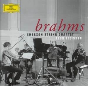 Johannes Brahms (1833-1897) : Les quatuors à cordes et quintette pour piano et cordes en fa mineur op. 34. Quatuor Emerson (Eugene Drucker et Philip Serzer, violon, Lawrence Dutton, alto et David Finckel, violoncelle) avec Leon Fleisher, piano. 2 CDs Deutsche Grammophon CDS 477 6458, code barre : 028947764588. Enregistré à l’American Academy of Arts and Letters à New York entre décembre 2005 et janvier 2007.