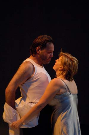 Patrice Caurier et Moshé Leiser comme à leur habitude fouillent au maximum le texte pour en livrer ses dessous psychologiques. Après une éclatante Jenůfa – récompensée par le Grand Prix de la Critique – le duo de choc de la mise en scène lyrique poursuit son exploration du répertoire par l'unique opéra de Bartók. Le château est une chambre d'hôtel. Les sept portes deviennent sept aperçus de la personnalité de Barbe-Bleue. Le seigneur taciturne se transforme en un être névrosé et pervers qui a su séduire Judith par ses allures de grand séducteur. Celle-ci se rend compte peu à peu de son erreur, et finit ligotée et étouffée, comme les trois épouses précédentes de Barbe-Bleue, toutes trois photographiées au moment de leur agonie. Jeanne-Michèle Charbonnet et Gidon Saks sont d'excellents acteurs de ce huis clos devenu drame psychologique. Dans les deux cas la puissance vocale est époustouflante, le jeu scénique confondant de naturel. Une réserve toutefois pour le baryton-basse, qui a une forte tendance à pousser les sons en force. L'orchestre peine parfois aussi, les cordes ont perdu de leur brillant en cette seconde partie de spectacle. N'oublions pas qu'un tel programme reste éprouvant pour les instrumentistes. Daniel Kawka mène toutefois ses troupes à bon port, en réussissant la gageure de ne jamais couvrir les chanteurs. Il est en cela aidé par l'excellente acoustique de la salle.