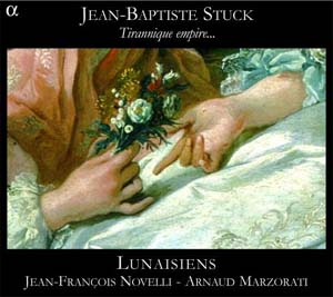Jean-Baptiste Stuck (1680-1755) : Cantates : L’Impatience ; Mars Jaloux ; Héraclite et Démocrite. Michele Mascitti (1664 ?-1760)  : Sonate XI à Deux violons & basse. François Duval (1672-1728) : Sonate Héraclite et Démocrite. Les Lunaisiens : Jean-François Novelli, taille ; Arnaud Marzorati, basse taille. Stéphanie Paulet et Bérengère Maillard, violons ; Benoît Toïgo et Marine Sablonnière, flûtes ; Isabelle Saint Yves, violoncelle ; Bertrand Cuiller, clavecin. 1 CD Alpha Réf. Alpha 111. Code barre : 3 760014 191114. Enregistrement à Paris, Eglise Notre-Dame du Liban en juin 2006. Notice bilingue (français, anglais). Durée : 66’23.