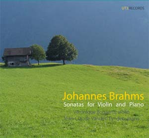 Johannes Brahms (1833-1897) : Sonates pour violon et piano : op. 78 en sol majeur ; op. 100 en la majeur ; op. 108 en ré mineur ; Scherzo en ut mineur. Véronique Bogaerts, violon ; Jean-Claude Vanden Eynden, piano. 1 CD UT3. Records. Référence UT3-012. Enregistré en février 2007. DDD. Notice bilingue (français-hollandais). Durée : 70’20’’.