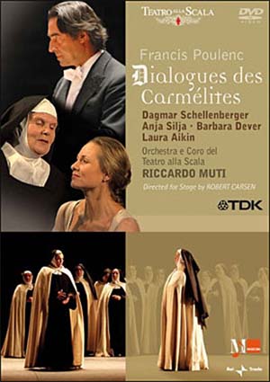 Le texte du compositeur s'appuie sur celui de Georges Bernanos (1948), lui-même inspiré par une nouvelle de Gertrud von Le Fort (1931). Les choix de Robert Carsen aboutissent à une mise en scène épurée, dénudée et très statique. Néanmoins, une fois passée la surprise de choix esthétiques discutables, apparaissent une indéniable cohérence et cohésion du déroulement scénique. On finit par l'intégrer et l'adopter. Quant aux voix, elles soulèvent plusieurs problèmes. Manifestement les chanteurs (un seul est français) ont bien du mal à restituer l'intelligibilité d'un texte qui en lui-même déjà oscille entre banalités et pensum itératifs. Le choix, tout à fait respectable, de rapprocher les voix davantage vers la parole que vers le chant, accentue indéniablement la performance moyenne des chanteurs dont on ne saurait cependant critiquer le jeu théâtral notamment la prestation réussie de Dagmar Schellenberger dans le rôle de Blanche.