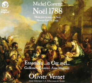 Michel Corrette (1707-1795) : Messe pour le temps de Noël ; Nouveau livre de Noëls. Guillemette Laurens, mezzo-soprano ; Anne Magouët, soprano ; Ensemble …in Ore mel… ; Olivier Vernet à l’orgue historique J. -A. Silbermann de Soultz. 2 CD Ligia Digital Lidi 0104187-07. Code barre 3487549901871. Enregistré en septembre 2007. Livret en français. Durée totale : 98’22’’.