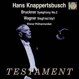 Anton Bruckner (1824-1896) : Symphonie n°3 en ré mineur (version de 1890). Richard Wagner (1813-1883) : Siegfried Idyll. Orchestre Philharmonique de Vienne, direction : Hans Knappertsbusch. 1 CD Testament SBT1339. Code barre : 749677133924. Enregistré du 1er au 3 avril 1954 (Bruckner) et le 1er avril 1955 (Wagner) en la Grande Salle du Musikverein de Vienne. ADD [mono]. Notices trilingues (anglais, allemand, français) excellentes. Durée : 73’22’’