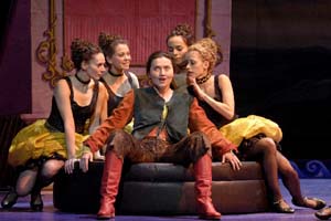 Cette Etoile a été un authentique spectacle. La mise en scène de Jérôme Deschamps et Macha Makeïeff évite le ridicule tout en restant drôle. Rien n'est forcé, au contraire. A la rigueur, on se serait presque attendu à plus de pitreries. L'abondance des textes parlés a été réduite en supprimant les répliques des rôles non chantés, tenus par des comédiens qui nous ont fait revivre quelques instants l'humour décalés des Deschiens (avec l'excellent Jean-Marc Le Bihour). Et tant que cela nous évite la prose de Leterrier et Vanloo… L'option de Macha Makeïeff pour les décors et costumes reste dans la simplicité, avec des couleurs vives et criardes. L'Opéra-Comique n'a pas les moyens scéniques des autres scènes lyriques parisiennes, et le spectacle doit partir en tournée (pour l'instant à Nîmes en janvier, espérons plusieurs autres dates pour les saisons à venir).
