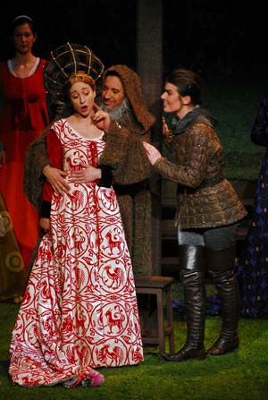 Aux côtés d'une Ragonde efficace sans jamais basculer dans la charge, Angers Nantes Opéra, fidèle à sa réputation de découvreur de talents, nous présente trois artistes en devenir. La mezzo Anna Destraël est crédible en travesti et joue d'un timbre fruité pour camper un Isolier encore inexpert mais prometteur. Le ténor brésilien Luciano Botelho joue la comédie avec bonheur, son timbre est plaisant et sa virtuosité incontestable ; il ne lui manque qu'un brin d'explosivité sur les notes les plus hautes pour compléter notre bonheur, mais nous suivrons avec attention ses prochaines prestations. En Comtesse Adèle, la gracieuse québécoise Pascale Beaudin s'impose avec une voix des plus saines, une technique affirmée et une musicalité sans reproche ; la performance vocale est remarquable, en dépit d'un léger durcissement dans le suraigu, mais la performance scénique reste légèrement et pudiquement en retrait par rapport à celle de ses camarades.