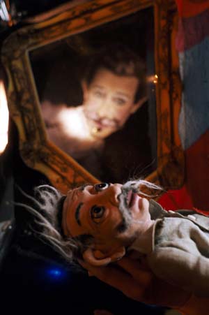 Un troisième personnage se manifeste. Un écran de télévision en noir et blanc lui sert de porte d’entrée. Il est moustachu, et doit être un contemporain de Laurel et Hardy ou de Charlie Chaplin. Il quitte l’écran virtuel pour se transformer en marionnette. Le spectacle peut commencer. Le bonhomme moustachu en est le héros. « Monsieur » sera bientôt rejoint par « Madame ».