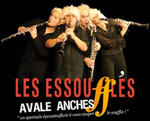 Ils sont quatre musiciens à vent, confirmés, bardés de diplômes, et ils sont fatigués… Ils n'en peuvent plus d'être enfermés dans les conservatoires et salles de concert où les vestes en queues de pie n'offrent guère plus de liberté qu'une camisole. Les voilà harassés, exténués, démoralisés, voire –n'ayons pas peur des mots – essoufflés ! En phase terminale d'ennui, une seule solution s'impose à eux pour éviter que les portées musicales leur apparaissent comme d'interminables barres d'une prison fermée à clé de sol : le rire.