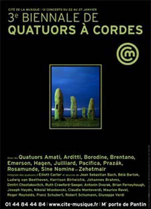 La troisième Biennale de quatuors à cordes qui s'est tenue à la Cité de la Musique du 22 au 27 Janvier témoigne, tout comme les deux premières, du goût immodéré du public pour un genre qui, a priori, en appelle à la rigueur, voire à l'ascétisme mais à travers lequel les compositeurs qui l'ont pratiqué ont certainement livré la quintessence de leur art. Si l'amphithéâtre du Musée offrait le meilleur confort d'écoute pour une telle manifestation, la plupart des concerts avaient lieu dans la grande Salle de la Cité – affluence oblige – reconfigurée pour l'occasion en un espace plus intimiste qui situait les quatre interprètes au centre du public.