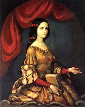 Sœur Juana Inés de la Cruz est née le 12 novembre 1651 à San Miguel Nepantla au Mexique sous le patronyme de Juana Inés María del Carmen Martínez de Zaragoza Gaxiola de Asbaje y Ramírez de Santillana Odonoju, d'un père basque espagnol – qui n'a jamais voulu la reconnaître – et d'une mère mexicaine Isabel Ramírez – riche propriétaire terrienne. Naître « Criolla » (ndlr : métisse) dans cette ère de l'inquisition qui règne sur toute l'Europe et par extension aux Amériques, n'est pas chose facile. Enfant prodige elle écrit dès l'âge de sept ans. A vingt ans elle est la plus érudite de son époque. Bien que les études soit refusées aux femmes, c'est en pure autodidacte qu'elle cultive les mathématiques, la musique, la philosophie, l'astronomie, la théologie et surtout la poésie. Sous la haute protection de la vice-reine du Mexique, la Marquise de Mancera, elle aurait pu faire un mariage pour lui laisser une place de choix au sein de la haute société. Les codes sociaux de l'époque l'aurait obligée à se soumettre au silence et à l'abandon de l'écriture. Aussi elle prendra le voile sous la pression de l'église toute présente qui déjà lui reproche sa désinvolture lorsqu'elle ose s'exprimer. Ce n'est quand 1669 qu'elle prendra définitivement le voile au couvent de Saint Jérôme où elle meurt en 1695. Elle est considérée comme la première femme poète du Nouveau Monde et ses écrits sont les témoignages d'un engagement pour la défense au droit du savoir et du plaisir des femmes.