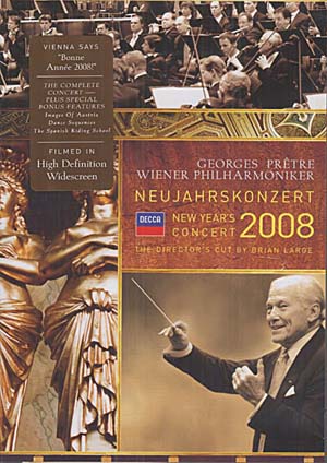 Autre avantage de ce concert : la présence de six inédits à coloration française pour la plupart : La polka de Laxenburg de Josef Strauss ; la valse Paris (qui cite la Marseillaise, audace au royaume austro-hongrois de l'époque !) et le Galop de Versailles de Johann Strauss père ; La Marche de Napoléon, la polka française La Parisienne et le Quadrille d'Orphée de Johann Strauss II. On sent le maestro particulièrement à l'aise dans ses clins d'œil à la France et les citations d'Offenbach dudit Quadrille, enlevé et fougueux à souhait. Quelques allusions à l'actualité 2008 apparaissent ici et là : un Galop Chinois savoureux de Strauss père pour les jeux olympiques, ou une Polka sportive de Josef Strauss pour la coupe d'Europe de football qui est organisée par la Suisse et l'Autriche. Ce qui nous donne à voir pendant ce bis le Philharmoniker portant l'écharpe de l'équipe nationale autrichienne et Georges Prêtre en arbitre avec sifflet et carton jaune !
