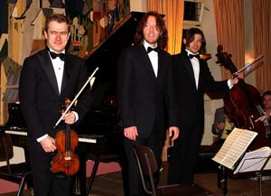 Frank Braley, Renaud et Gautier Capuçon étaient au cœur de la salle, très proches du public, ce qui accentuait le côté intime de l'audition. Visiblement en grande complicité, les trois amis nous jouèrent un Trio n°1 tout en fraîcheur et en éclat. Les instruments résonnaient merveilleusement bien. La communication semblait parfaite. Un regard. Un sourire. Le toucher de Frank Braley fut toujours d'une grande subtilité, fluide, tout en nuance et délicatesse démontrant sa maîtrise musicale avec finesse et transmettant au piano le relief et l'équilibre attendus. Renaud Capuçon donna à son instrument une sonorité remarquable tout en adresse et en justesse. Gautier Capuçon était très expressif. Son visage, ses yeux, ses sourires, sa respiration reflétaient l'émotion musicale qu'il communiquait avec passion.