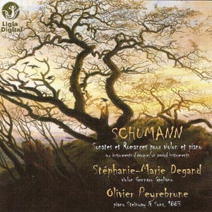 Stéphanie-Marie Degand et son complice, Olivier Peyrebrune, nous y rappellent avec les deux premières sonates (1851) et Trois romances (1849), initialement pour hautbois et piano qui conviennent parfaitement au timbre et au vocabulaire expressif du violon. D'autant plus engagés émotionnellement qu'ils jouent sur des instruments du XIXe siècle, les deux protagonistes offrent une visite fiévreuse et passionnelle de ces pages au dramatisme poignant et viscéral.