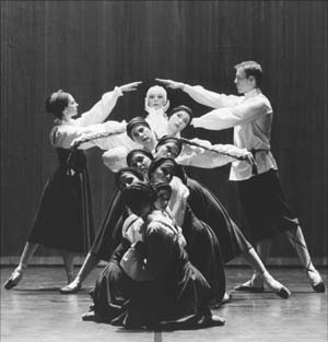 La chorégraphie met cette fois en valeur le futur couple : les fiancés sont des solistes qui racontent leur douleur, leur révolte, et finalement leur soumission. Ici rien n'est figé dans un groupe dont la pression est acceptée, mais au contraire on tente sa chance en tant qu'individu contre le poids de la tradition. Les êtres parlent, semblent agir, mettent en tous cas en scène leurs désirs : ils se présentent comme des héros romantiques d'une saga où l'on défie la société. C'est donc ici tout le contraire d'un rituel et la musique devient de ce fait plus une illustration du récit que le véritable moteur de la présentation.