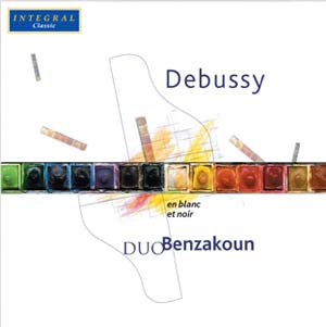 Pour le label Intégral Classic, Laurence et Daniel Benzakoun, abordent Debussy, occasion renouvelée de prouver la qualité de leur travail dont un des traits majeurs consiste en une grande lisibilité et une précision extrême. Leur jeu s'attache avec succès à respecter et à doter de la meilleure lecture possible la musique pour deux pianos de Claude Debussy. La suite pour deux pianos intitulée En blanc et noir, appartient à la dernière manière du maître et choqua par exemple Camille Saint-Saëns par la sèche pureté des lignes, par une abstraction débouchant en prise directe sur une franche modernité, par trop heurtante pour beaucoup d'oreilles et de sensibilités.