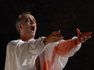 Là encore, les interprètes ont su convaincre le public par leur jeu plein d'humour et leur interprétation de qualité. A noter plus particulièrement la prestation de Christophe Lacassagne, que les dijonnais ont eu le plaisir de retrouver plus longuement ici après son intervention dans Toscadans le rôle du Sacristain, en janvier dernier. Mais à ce double admiratif en quelque sorte du maître, s'oppose un double « punitif », à savoir le Commandeur. Dès le départ, le rapprochement physique dû en partie au même couleur – encore le blanc – et au physique des deux personnages, avec des cheveux gris-blanc, interpelait.