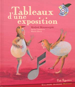 Au travers de dix peintures originales sur le thème Tableaux d’une exposition de Modest Moussorgski, voici un recueil pédagogique qui ne s’appuie pas comme trop souvent sur des illustrations sonores extraites d’enregistrements déclarés du domaine public pour fabriquer tant bien que mal un ouvrage « bouts de chandelles ». L’intérêt de cette collection tient du sérieux de ses producteurs. Elle présente des oeuvres originales avec des interprètes actuels même si nous savons tous que cela comporte des frais bien plus conséquents. Nous saluons donc d’emblée le courage des décideurs.