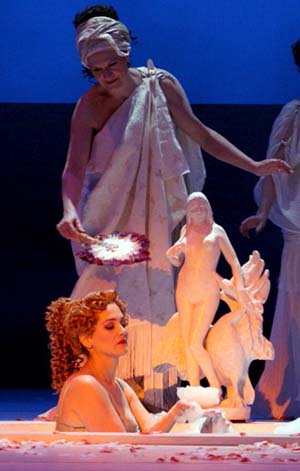 L'opérette, dit-il, est un genre noble, qui mérite le respect, et qu'il faut tirer vers le haut, vers le beau, vers l'universel. En plein accord avec le décorateur et le costumier, il s'est inspiré des toiles « grécisantes » d'un peintre anglais, Alma-Tadema, dans le goût d'un néo-classicisme très XIXe siècle.