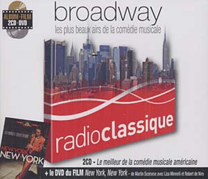 Pour commencer de bonne humeur votre journée ou étendre votre culture musicale, procurez vous ce disque ! Radio Classique propose une très bonne sélection des enregistrements les plus célèbres de Broadway : West side story, Singin’in the Rain, Hair, Gypsy, The sound of music, Cabaret, Hello Dolly, Porgy and Bess, No, no Nanette, Chicago, The king and I, Le fantôme de l’opéra, 42nd street. Deux disques pour découvrir ou redécouvrir la comédie musicale. Occasion aussi de réécouter les versions originales, bien souvent massacrées par la suite. En bonus de ce double CD, le bienvenu DVD du film de Martin Scorsese, succédant à sa Palme d’or : New York, New York (proposé dans sa version longue et courte – seconde version américaine et version européenne), film hommage aux comédies musicales des années 40/50 dont toute l’imagerie est inspirée, magnifique esthétiquement, avec des décors grandioses.