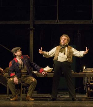 La réussite de cette production est ensuite celle d'un ouvrage bien distribué. Le rôle-titre est admirablement chanté par Alessandro Corbelli. Inoubliable interprète de Rossini ou Donizetti, il y a peu touchant Sulpice papa de Marie dans La Fille du régiment, le baryton reprend l'habit de Falstaff dont il découvre les multiples facettes, blessé et plein d'humour, noble et voyou, à l'aide de phrasés subtils qui rendent justice au texte de Shakespeare adapté par Boito. Défiant toujours les catégories vocales, Anna Caterina Antonacci troque le discret mezzo de Meg Page pour le soprano pétulant d'Alice Ford. Elle aussi s'empare avec art du texte et il faut l'entendre lâcher indignée à Ford : « La lessive ! » lorsque celui-ci ose lui demander ce que contient le panier où est caché Falstaff. Elle prend la tête d'une joyeuse troupe de commères, toutes aussi efficaces et charmeuses les unes que les autres, la discrète et élégante Caitlin Hulcup en Meg Page et l'irrésistible Marie-Nicole Lemieux en Mrs Quickly. Cette dernière est une entremetteuse d'une grande drôlerie, endormant avec un art consommé la méfiance de Falstaff (« Dalle due alle tre ») ou l'enfonçant avec énergie dans le panier à linge mais aussi veillant avec douceur sur les amours de Fenton et Nanetta. Amel Brahim-Djelloul est une délicieuse Nanetta, même si la voix reste encore verte et la projection discrète, surtout face à un Fenton roi des décibels. Car Francesco Meli se fait remarquer en jeune premier, avec une voix ample et puissante, une parfaite homogénéité sur toute la tessiture ainsi qu'un timbre séduisant. Ludovic Tézier n'a plus à prouver ses affinités avec l'écriture de Verdi : Renato vocalement parfait et tout intériorisé à la Bastille la saison passée, le baryton est un Ford tout aussi remarquable – une voix bien menée et toute en nuances – mais il peut cette fois faire entendre la fureur de Ford qui se croit trompé, et toujours avec sa coutumière élégance. Les petits rôles sont du même niveau, couple d'acolytes bien en place et risible vieux prétendant de comédie.