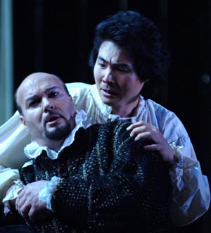 Quand, après la pause, au début de l'Acte III, le directeur de l'Opéra Royal de Wallonie, Stefano Mazzonis di Pralafera monte sur scène, on se doute que la nouvelle qu'il va annoncer ne sera pas bonne : Hao Jiang Tian vient de tomber dans l'escalier… et il doit chanter un air particulièrement difficile, « Ella giammai m'amo », où Philippe II médite sur sa solitude, lui qui détient le pouvoir absolu mais s'est empêtré dans les rets amers d'un mariage sans amour. La basse chinoise réalise pourtant une prestation remarquable suscitant de nombreux vivats… et éclipsant presque le Posa chaud et élégant de Giovanni Meoni et la fougue altière de Yonghoon Lee qui sied particulièrement bien au rôle-titre de l'opéra de Verdi. Saluons pour finir la présence de Luciano Montanaro qui fut un Grand Inquisiteur d'anthologie : cette basse, que nous n'avions encore jamais entendue chanter, se révèle tout simplement époustouflante par sa puissance sonore et sa manière d'habiter un rôle qui, pourtant, avait tout pour être fade et désincarné dans la mise en scène… Cette découverte justifie à elle seule notre déplacement en terre liégeoise.