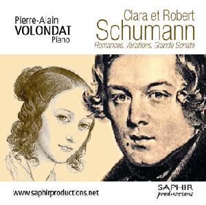 Le choix des œuvres présentées ici n'est pas anodin. En effet, Pierre-Alain Volondat tient à souligner les liens qui unissent les époux. Ainsi les Variations op. 20 (1853) de Clara sont-elles dédiées à son mari, auteur du thème principal tandis que Robert lui avait déjà dédié sa Grande Sonate op. 11 de 1835 dans laquelle l'image de l'aimée ne cesse d'hanter chaque page. D'ailleurs, Clara n'est-elle pas représentée en ange sur le frontispice de l'édition originale ?