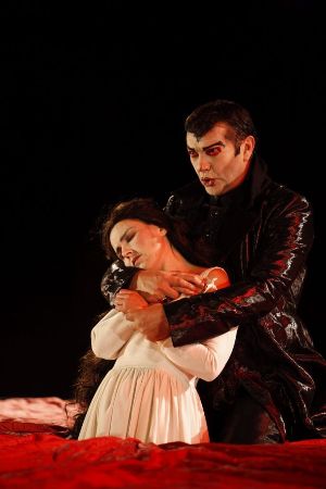 La distribution, majoritairement francophone, se distingue par son excellente prononciation. Andrea Giovannini est un Hoffmann à la diction française très honorable. En dépit d'un timbre assez banal, il impose une incarnation réussie du poète, tout au long d'une représentation qu'il traverse sans s'économiser. Suivant les volontés du compositeur, une seule interprète joue les trois facettes de la femme. C'est Isabelle Philippe qui relève le défi, avec brio. Sans ostentation dans le suraigu, elle parvient à renouveler le rôle souvent purement technique d'Olympia en jouant sur les variations, très personnelles et réussies. L'instrument a pris du corps, ce qui lui autorise une Giulietta charmeuse et une Antonia particulièrement émouvante. Jean-Claude Sarragosse endosse le costume du «méchant» de chaque acte et déploie un phrasé parfait et un timbre magnifique dans les passages chantés, ainsi qu'une incontestable autorité de comédien tout au long d'un ouvrage dont il semble tenir les rênes. Christophe Lacassagne complète efficacement ce quatuor de tête, en Luther sympathique mais surtout magnifique dans le rôle de Crespel. Le reste de la distribution se distingue plus par sa verve comique et sa cohésion de troupe que par des qualités purement vocales. Soulignons enfin l'excellente préparation du chœur et le rendu orchestral assez stupéfiant pour un orchestre réduit, mené avec conviction par Dominique Trottein, pour achever d'enchanter un public conquis par cette belle soirée musicale sous les étoiles.