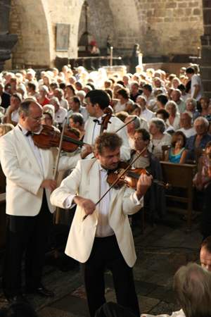Dans l'église de Villefranche de Conflent, c'est la «Chaconne» pour cordes qui était donnée en création française. Krzysztof Penderecki l'écrit en 2005 sous le choc de la mort du pape Jean-Paul II dont il a été l'ami en Pologne durant sa jeunesse. Dans une écriture néo-tonale au souffle postromantique qu'affectionne aujourd'hui le compositeur, cette «Chaconne» s'inscrit dans le moule formel traditionnel : véhiculant sa charge de pathos, la ligne chromatique descendante sous-tend une écriture richement expressive nourrie par le timbre chaleureux d'interprètes manifestement très investis dans cette création. L'enthousiasme de l'auditoire nous valut une deuxième exécution, plus convaincante encore que la première !