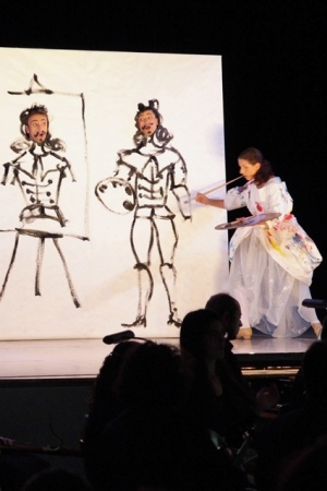 La première des représentations nous a été offerte pour la clôture du Festival de la Chabotterie. Ce n'est malheureusement pas dans la cour d'honneur du Logis en raison du risque d'intempéries, mais dans la salle de spectacle d'un village voisin que fut donnée cette représentation.