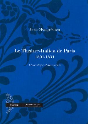 Le Théâtre-Italien de Paris 1801-1831. Jean Mongrédien. Edition Symétrie en collaboration avec Palazzetto Bru-Zane (Centre de musique romantique française), Ouvrage publié avec le concours de la Fondation Napoléon, du Centre national du livre, du Fond d’action SACEM et de l’Université Paris-Sorbonne (Paris IV). Paris. 8 volumes. 5384 pages. Disponible uniquement dans le cadre d’une souscription pour les 8 volumes de ce travail, prix : 640 euros. N° ISBN : 978-2-914373-30-2. Code barre : 9 782914 373302. Dépôt légal : avril 2008.