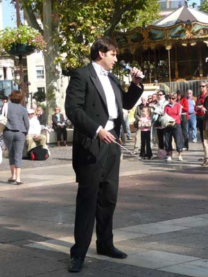 Mais que se passe-t-il donc ce mercredi 24 septembre dans la cité papale ? Un orchestre en habit de soirée dès 10h du matin et qui fait danser sur le pont d’Avignon… ou du moins qui joue du Beethoven devant ses arches mythiques, au risque de provoquer quelques froissements de tôles le long des voies sur berge. Une heure plus tard, c’est l’aubade (presque au sens propre) devant l’hôtel de Ville puis devant le Conseil Général, lieux emblématiques. Un orchestre lyrique jouant les crins-crins de rues et un chef qui se transforme en bonimenteur de foire ! Mais que se passe-t-il donc ?
