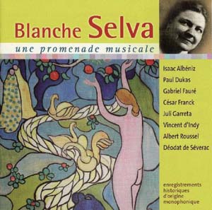 César Franck (1822-1890) : Sonate pour piano et violon en la majeur ; Juli Garreta (1875-1925) : Sardana extrait de la Sonate en do mineur. Albert Roussel (1869-1937) : Sicilienne extrait de la Suite op. 14. Vincent d’Indy (1851-1931) : Départ matinal extrait de Tableaux de Voyage op. 33 ; Danses rythmiques extrait du Poème des Montagnes op. 15. Déodat de Séverac (1872-1921) : Où l’on entend une vieille boîte à musique extrait de En vacances. Gabriel Fauré (1845-1924) : Berceuse extraite de Dolly op. 56 ; Barcarolle n°13 en ut op. 116, etc. Blanche Selva, Vincent d’Indy, Lazare Lévy, Moritz Rosenthal, Georges de Lausnay, Babeth Léonet, Yvonne Lefébure, piano. Joan Massiá, violon. 1 CD Association Blanche Selva RCP076 code barre : 5 425 003 920 769. Enregistrements historiques d’origine monophonique (78 tours). Notice bilingue (français, anglais). Durée : 74’17