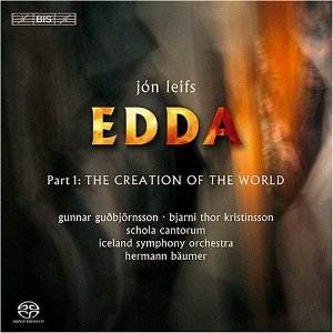 Les wagnériens auront fait d'eux-mêmes le rapprochement du titre de l'oratorio avec la déesse de la terre Erda, et ils retrouveront dans les premières notes d'Edda I et de l'Or du Rhin la même volonté des deux compositeurs d'ouvrir leur œuvre gigantesque par une peinture de la création du monde. Là où Wagner prend l'option de démarrer sur un mi bémol imperturbable, comme sortant des profondeurs, Leifs choisit une évocation astronomique proche, façon «big bang», où une note stratosphérique est interrompue par une déflagration aux percussions. L'enregistrement, fidèle aux canons esthétiques du label Bis, restitue entièrement la dynamique spectaculaire souhaitée par le compositeur. Cette approche brute se poursuit pendant une vingtaine de minutes avant de céder la place à des atmosphères plus lyriques.