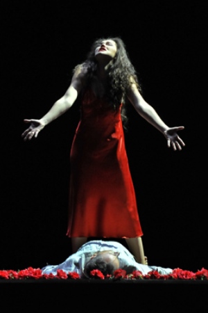 La scénographie et les costumes ont fait alterner à la couleur gris-argent symbole du sommeil, de l'ennui, de la tristesse et de la mélancolie, le rouge brillant de l'amour, de la passion, du sang, de l'érotisme, du diabolique, de la haine, de l'égoïsme, de l'amour infernal. C'est pourquoi le « bon » Renaud renonçant à la luxure à la fin de l'opéra change ses vêtements gris avec les rouges d'Armide.