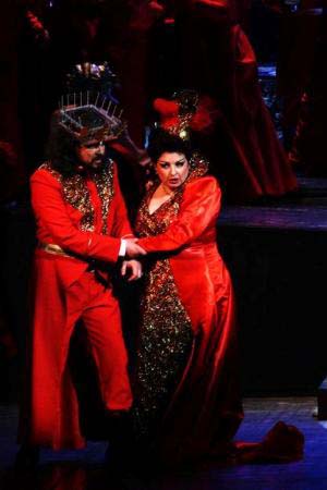 Quand se lève le rideau, la musique reprend ses droits. L'orchestre est dirigé d'une main ferme et efficace par Iurie Florea, l'acoustique sèche de la salle et sa taille relativement modeste font ressortir la franchise des attaques. Macbeth est campé avec charisme par Eugen Secobeamu. Il incarne le charme masculin à la roumaine, où la suavité latine se mêle à la rudesse inquiétante des plaines orientales. Conscient que Macbeth n'est pas Don Giovanni, Secobeamu saura faire perdre à son personnage son aura initiale, pour n'être plus qu'un pantin en proie à ses démons. La Lady Macbeth de Silvia Sorina Munteanu évoque les chanteuses des années 1950 par sa solide santé vocale, sa posture résolument tournée vers le public à chacun de ses airs, combinées à une expressivité dramatique limitée. Et puis surtout, il y a Teodor Ilincăi, superbe Macduff aux aigus lumineux dans son fameux air «Oh figli, miei» du miel de bel canto. A la date de parution de cet article, on peut apercevoir Ilincai dans une vidéo pirate publiée sur YouTube. Filmé de manière tremblotante, cet extrait, comme toutes les émotions volées peut-être, donne une impression très fidèle de la qualité du ténor et du chœur dans ce passage clé de l'opéra.