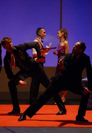 Très cinématographique, la mise en scène réserve cependant de nombreuses trouvailles réjouissantes. Comme ce serveur titubant qui évoque un personnage de Jacques Tati ou de Blake Edwards. Comme cette histoire de vol de diamant raconté exclusivement en ombres chinoises à l'arrière-scène. Comme ces allusions aux séries fétiches des années 60 et aux films d'espionnage. Une nostalgie bon teint qui sied au chorégraphe, mais qui peine parfois à instaurer de la distance avec ses personnages. La critique voilée que Nasser Martin-Gousset pose sur ses sources d'inspiration n'est qu'à peine effleurée et le spectacle aurait sans doute gagné en efficacité et en rythme si elle avait été plus franche.