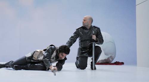 nous a habitués à privilégier la caractérisation des personnages, au moyen d'une direction d'acteurs très fouillée, plutôt que de céder à la tentation décorative. Nous ne trouvons rien de féerique ou de spectaculaire dans sa vision de l'ouvrage, considéré comme une méditation dramatique et «une variation en trois actes sur le thème de la séparation». L'idée de la déchirure est d'ailleurs inscrite dans le sobre décor fissuré conçu par . a cherché à extraire la violence et la souffrance dissimulées sous le classicisme de la forme, dans une démarche qui s'apparente à celle qu'il avait adoptée pour sa mise en scène de Pelléas et Mélisande ici-même. Le résultat, mêlant engagement dramatique et stylisation discrète, est à la hauteur de l'enjeu.