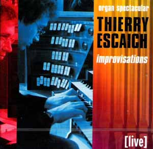 Thierry Escaich (né en 1965) : Improvisations à l’orgue. Paraphrase sur le « Salve Regina », Choral varié, deux Noëls, deux évocations : Brouillards et tempête, Prélude et double fugue sur « O Gott, du frommer Gott », Prélude et danse symphonique sur « Ave Regina Cœlorum », Passacaille, Andante et scherzo, Thème et variations sur un thème populaire, Intermezzo sur un thème de Couperin, Poème improvisé sur un texte de Saint-John Perse, Improvisation libre sur un thème de Loïc Maillé, Méditation sur le thème du « Notre Père » de Duruflé, Rhapsodie sur deux thèmes, Intermezzo. Thierry Escaich aux orgues de la cathédrale d’Altenberg, de Saint-Thiébault de Thann, de Saint-Louis de Versailles, de Saint-Sernin de Toulouse, de Saint-Martin de Dudelange, de Saint-Etienne-du-Mont à Paris, de Saint-Pierre de Bastogne, de Saint-Ignace de Loyola à New York. 2 CDs Accord 480 0874. Code barre 028948008742 ; Enregistrements « live » de 2000 à 2006. Livret bilingue français/anglais. Durée totale : 137’45’’