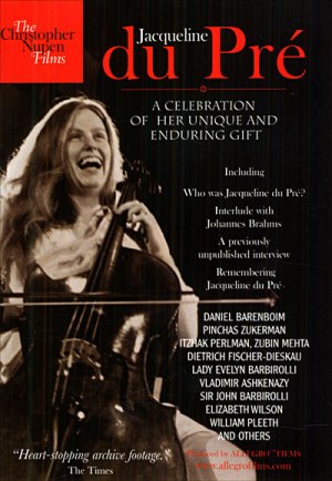 Jacqueline du Pré : A celebration of her unique and enduring gift. Documentaire en 4 parties : Who was Jacqueline du Pré ? ; Interlude with Johannes Brahms ; Interview with Jacqueline du Pré ; Remembering Jacqueline du Pré. Réalisation : Christopher Nupen. Production : Allegro Films/Argos Productions. 1 DVD The Christopher Nupen Films A 07CN D. Code barre : 814446010031. Langue : anglais. Sous-titres en français, allemand, espagnol, italien, finnois. Notice en anglais, français, allemand, espagnol, italien, finnois. Toutes zones. Format son : stéréo et mono. Format image : 16/9 et 4/3, NTSC. Bonus : extraits des autres films de Christopher Nupen. Durée : 166’.