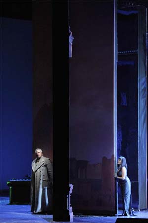 La partition exige en effet des chanteurs d'exception. Le rôle titre, créé par Rethberg et bientôt repris par Jeritza, trouve en Ricarda Merbeth une interprète de très haut niveau. Nous ne savons que louer, de la projection impériale ou de la pureté des aigus, chez cette cantatrice capable de tonner par dessus les tutti orchestraux comme de plier sa voix à d'habiles nuances. Elle partage, de plus, avec Laura Aikin une parfaite maîtrise du langage straussien. Celle-ci, costumée en vamp hollywoodienne, a conservé sa facilité dans l'aigu mais l'instrument s'est étoffé. Vocalement souveraine, sa magicienne mène le jeu avec une classe indéniable. Ewa Wolak, enfin, aborde le coquillage omniscient avec les moyens d'un authentique contralto.