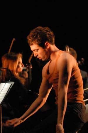 Rouen. Théâtre des Arts. 10-III-2009. Compagnie Sylvain Groud : Cordes (Création mondiale). Chorégraphie : Sylvain Groud. Musiques de Igor Stravinsky, Claude Debussy, Eugène Ysaïe et Qigang Chen. Lumières : Mickael Dez. Costumes : Gwenaelle Hocquard. Orchestre de l’Opéra de Rouen Haute-Normandie, direction : Benjamin Lévy. Jane Peters, violon. Avec : Anusha Emrith, Juliette Nicolotto, Yurié Tsugawa, Marie Urvoy, Jérémy Kouyoumdijian, Cyril Geeroms, Sylvain Groud et Emilio Urbina.