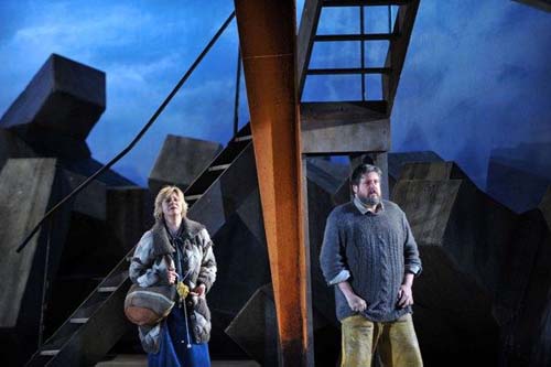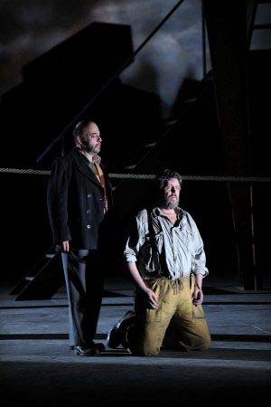 Parce que l'incompris, c'est Peter Grimes. Ignoré de lui-même, prisonnier de sa propre existence, de son inaptitude d'exprimer ses désirs à d'autres qu'à lui-même, d'accepter celle qui lui tend la main. Ermite de son monde, solitaire de l'immensité de la mer, effrayé par le regard des autres, toute la misère psychique de Peter Grimes colle à la peau de Stephen Gould. Massif, immense, le ténor américain habite le rude marin pêcheur aux gestes sans finesse empruntés à la dureté efficace de son métier. Embrasant la scène de sa présence, animé d'une touchante humanité, il se love admirablement dans son personnage. Fixant le vide sidéral, poursuivi par la fatalité mortelle de ses actions, quand s'élève l'ultime plainte de Peter Grimes, Stephen Gould touche aux sommets de l'émotion. Et à l'image de son apprenti mort qu'il porte dans ses bras avant d'aller le jeter à la mer, il nous vient comme une envie de consoler l'âme troublée de cet homme à l'implacable destin. Quelle puissance passionnelle dans son ultime invocation du désir de vivre une vie comme celle de tout un chacun ! Tantôt offrant sa voix baritonale à sa colère ou à son délire, tantôt envahit par l'incapacité de son personnage d'exprimer son désarroi face aux moqueries des gens, Stephen Gould module tout-à-coup son instrument d'admirables pianissimo à vous transpercer le cœur.