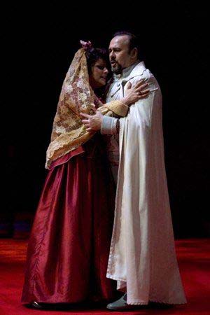 Du côté des solistes, la distribution réunie s'avère bien homogène même si quelques voix émergent. Parmi les principaux rôles, le ténor Pablo Cameselle (Abate) convainc plus vocalement que scéniquement. Si la voix est bien posée, cet abbé coureur de jupons reste bien en-deçà de la caricature qu'on attend de ce personnage comique. Personnage central de l'intrigue, le baryton Federico Gallar (El capitan Penaranda) déçoit quelque peu avec une voix sans grandes couleurs. Renversant en revanche, Rubèn Amoretti (El general, El del pecado mortal) qui, du fond de la scène, envahit le théâtre de son impressionnante voix de basse. En psalmodiant en puissance la conscience des assassins en état de péché mortel, son cri n'est pas sans rappeler l'entrée du Grand Inquisiteur dans le Don Carlo de Verdi. Mais c'est du côté féminin que l'auditoire va trouver son réel plaisir. La mezzo Mariselle Martinez (Principessa de Luzàn) assez discrète dans ses premières interventions éclate en un chant magnifique dès les premiers instants du second acte. Son Ce saint scapulaire révèle une voix chaude secondée d'une magnifique ligne de chant. De son côté, la soprano Mariola Cantarero (Dona Pepita) semble ne devoir se dévoiler aussi dans les derniers moments de l'œuvre. Il est vrai que le duo des deux rivales (ce qu'on vient de comprendre) du troisième acte est envoyé avec une fougue extraordinaire. Un duo enflammé qui fait penser à ce que Donizetti proposait dans son Anna Bolena créé en 1830, quelque trente ans avant la première représentation de ce Pan y Toros.