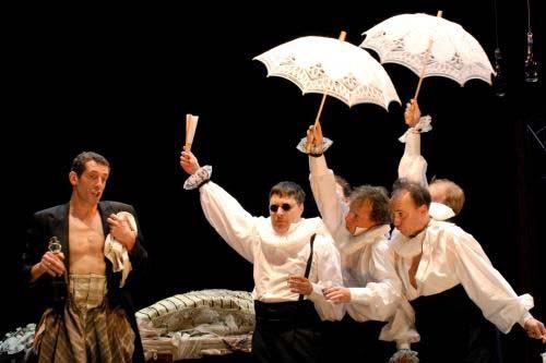 Sandrine Anglade a réalisé une mise en scène agile et spirituelle. Fuyant les perches hâbleuses que tendent les deux librettistes (Molière méritait mieux), elle a conçu un plateau nu sur lequel reposent deux objets : l'un, statique, est un lit miraculeux (si on y dort peu, on y grimpe, on y roule et saute dessus ; puis, parce qu'il est surélevé, on s'y cache dans ses trappes, situées sous le sommier) ; l'autre, mobile, est une collection d'élégantes pergolas multifonctionnelles. Alliant un rythme vif, des courses sur la pointe des pieds (jamais à pas lourds) et une expression physique empruntée au premier burlesque cinématographique, la mise en scène se complète d'une direction d'acteurs si accomplie que les chanteurs parlent les dialogues théâtraux avec une justesse digne de comédiens talentueux. Ainsi cajolé et revivifié, l'opéra-bouffe s'approche des plus raffinées comédies musicales. Le public, à commencer par le plus jeune, qui ignore le monde de l'opéra, a de quoi y prendre des marques savoureuses.