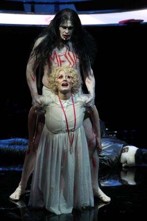 En revanche au niveau musical, une nouvelle fois, porte l'opéra à bout de bras (cf la production d'Andrea Chénier). Il propose une lecture exemplaire faisant de la fosse et du plateau une seule unité au service des plus infimes détails de la partition. L'Orchestre du Capitole, qu'il connaît bien, réagit à toutes ses indications. Les couleurs orchestrales sont torrides, ou maladives, les nuances extrêmement bien dosées afin de ne jamais mettre les chanteurs en difficulté, les tempi sont nerveux ou alanguis mais toujours justes. Cette direction si ferme et souple à la fois laisse entendre toute la modernité de cette partition à l'orchestration si rutilante. La distribution est capitale dans cet opéra car les moyens exigés sont considérables. est une habituée du rôle-titre (lire la chronique de notre confrère Andreas Laska) et elle en maîtrise toutes les difficultés. Longue voix de soprano juvénile capable de notes poitrinées sonores, elle se range dans les Salomé jeunes et passionnées. Elle est capable de très audacieuses colorations de sa voix en particulier le sulfureux «Ich habe deinen Mund geküsst, Jokanaan» avec un accompagnement d'orchestre évoquant un félin amoureux. La beauté du timbre égale la beauté de la femme, et c'est une des grandes frustrations de cette mise en scène qui refuse à une telle artiste toute sensualité et toute féminité. Morten Franck Larsen a lui aussi une bonne connaissance du rôle de Jokanaan, son aisance vocale et scénique est appréciable, le timbre est jeune et beau, la voix pleine de santé. est un Hérode très en voix et bien chantant, l'acteur est habile passant d'une certaine classe à un misérabilisme total quand il se dénude sans perruque. campe une Hérodiade dans le droit fil de sa Nourrice de la Femme sans ombre. Les couleurs contrastées de la voix, l'inégalité des registres et la magnifique projection du son lui permettent d'incarner la maîtresse sadique dominatrice demandée par la mise en scène. Une autre très belle voix se distingue, il s'agit de Martin Mühle dans Narraboth, timbre clair, allié à une puissance confortable. Tous les autres chanteurs sont admirables et seule , n'a pas le poids vocal suffisant par rapport à cette distribution superlative. Musicalement tout le non-conformisme de cette partition a donc été parfaitement offert.