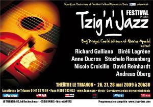 Forte du succès de son lancement en 2008, où 2500 spectateurs ont acclamé Florin Niculescu, Didier Lockwood, Thomas Dutronc, Sansévérino, Angelo Debarre…, la scène du festival Tzig'n'Jazz a été une nouvelle fois le lieu de rencontre entre ces deux univers musicaux, mêlant sensibilité et swing dans un spectacle envoûtant et plein d'émotion. Bercés par la musique tzigane, véritables virtuoses roumains du violon ou de l'accordéon, Costel Nitescu, Marius Apostol et Emy Dragoi en sont aujourd'hui les ambassadeurs sur la scène internationale.