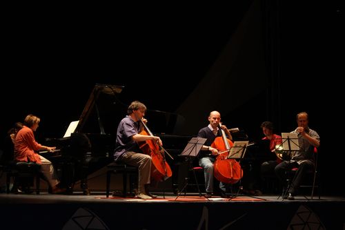 A l'inverse du concert du 24 juillet, celui du 26 s'est présenté comme le plus problématique de la première semaine du festival. Dans la Sonate n°1 de Brahms, le violon de , magnifique musicien, s'est fait étonnamment raide et aigre, tandis que Richard Hyung- jouait un piano puissant et guère nuancé. Rejoint par son comparse Igudesman, le pianiste s'est lancé dans un gag annonciateur de ce que les duettistes s'apprêtent à donner le 30 juillet aux Arcs : le piano cherche à jouer le fameux thème de James Bond, tandis que, en même temps, le violoniste se lance dans un thème tout aussi fameux de Mozart, mais les deux instrumentistes se retrouvent sur des notes communes. Si le public a volontiers adhéré à ce moment de détente, il s'en est trouvé pour regretter la rupture de ton trop importante après la mélancolie de l'œuvre de Brahms et avant la Sequenza n° XIV pour violoncelle de Berio. Cette dernière partition a été longuement présentée par son interprète, Xavier Gagnepain, au risque de noyer le public sous un flot d'informations l'empêchant de découvrir de lui-même les infinies richesses de l'ultime Sequenza composée par Berio. Le violoncelliste a donné toute la mesure de cette page impressionnante, jouant en didacticien un instrument autant percussif que belcantiste, tirant de son archet des sonorités chaudes dans un geste large et précis, voire un peu trop décomposé. Pour sa seconde interprétation de l'Eco pour violoncelle de Strasnoy, qui, à l'instar de la Sequenza, conclut le cycle des Eco, le membre du Quatuor Rosamonde a donné une lecture un peu docte. Dans les deux admirables Berceuses pour alto, voix d'alto et piano de Brahms, s'est montrée réservée et distante, s'exprimant dans un allemand peu clair, laissant la primauté au somptueux alto de David Gaillard, tandis que Tuija Hakkika soutenait le tout de son touché aérien et concis. Dans le rare Quintette pour cor, deux pianos et deux violoncelles de Schumann, Vladimir Dubois, Guillaume Paoletti, , Tuija Hakkika et Laurent Boukobza ont brillamment conclu un programme mi-figue mi-raisin, faisant oublier que cette partition est loin d'être la plus aboutie du musicien rhénan.