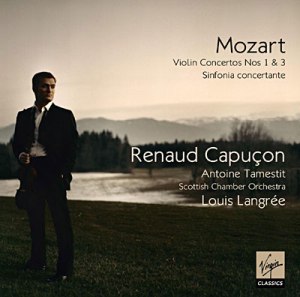 Wolfgang Amadeus Mozart (1756-1791) : Concerto pour violon n°1 en si bémol majeur K. 207 ; Concerto pour violon n°3 en sol majeur K. 216 ; Symphonie concertante pour violon, alto et orchestre en mi bémol majeur K. 364. Renaud Capuçon, violon ; Antoine Tamestit, alto ; Scottish Chamber Orchestra, direction : Louis Langrée. 1 CD Virgin Classics. Référence et code barre : 50999 50211227. Enregistré au Perth Concert Hall (Ecosse) du 17 au 20 septembre 2007. Notice trilingue (français, anglais, allemand). Durée 72’32’’