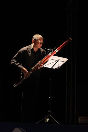 Le concert du dimanche 2 Août, éclairé en amont (conférence à 18h30) des paroles expertes de Maxime Kaprielian, réservait une surprise de taille : la présence inattendue (Eric Crambes avait à cet effet bousculé un peu l'affiche du programme) du dédicataire et créateur de la Sequenza XII pour basson de Luciano Berio, Pascal Gallois. En présence d'Oscar Strasnoy chargé de présenter au micro chacune des 14 Sequenze, le bassoniste de l'Ensemble Intercontemporain revenait sur la genèse d'une pièce écrite pour lui et à la mesure de ses capacités sidérantes d'instrumentiste. Courant sur une durée de 20', ce continuum sonore engendré par la respiration circulaire du bassoniste – l'apanage de quelques rares élus! – tient de la performance physique ; il met à l'œuvre des modes de jeu inédits tel le semi-glissando par micro intervalles et le «trémolo Berio» révélant une gamme de couleurs et de «granulations» sonores infinies. Pour une efficacité totale voire une théâtralité qui n'aurait pas déplu à Berio, Pascal Gallois s'est équipé de lunettes/loupe et a réduit sa partition à la dimension d'un micro film fixé sur son basson! Cette expérience d'écoute un rien éprouvante pour l'auditeur éclipsait inévitablement l'Eco pour basson solo d'Oscar Strasnoy dont Pascal Gallois n'était certainement pas le passeur idéal.