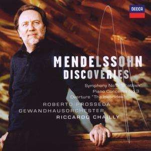 Inspirée d'un voyage en Ecosse à l'été 1829, la Symphonie n°3 « Ecossaise » connut plusieurs révisions. Le musicologue Thomas Scmidt-Beste est parvenu à rétablir la première version de la partition qui fut créée à la Philharmonic Society de Londres, en juin 1842. Comparée à la version finale, cette édition contient trente-neuf mesures de plus alors que quarante-neuf autres sont orchestrées différemment. En complément, Riccardo Chailly ajoute une lecture des esquisses des seize premières mesures de la pièce réunies par Christian Voss. Composée également suite à un voyage dans l'archipel des Hébrides (au large de l'Ecosse), en 1829, l'ouverture Les Hébrides ou La Grotte de Fingal fut créée, au piano, par le compositeur devant ses collègues compositeurs dont Berlioz lors d'un séjour à Rome en 1831. Malgré l'existence de trois copies du matériel d'orchestre, le compositeur en interdit toute exécution. La version définitive fut donnée à Londres en 1832. Cette « version romaine » est un peu plus longue et présente des différences dans plus de la moitié des mesures. Quant au Concerto pour piano n°3, laissé inachevé, il a été reconstitué par Marcello Bufalini à la demande du pianiste Roberto Prosseda.