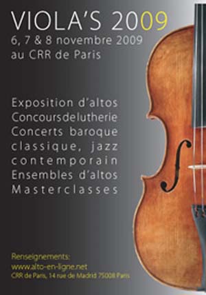 Aujourd’hui il est l’un des rares avec la contrebasse à avoir une évolution architecturale alors que le violon et le violoncelle restent dans des cotes spécifiques que les luthiers ne peuvent transgresser. Ce concours est organisé par l’association Franco Européenne de l’alto qui existe maintenant depuis 5 ans. Soucieux de soutenir le développement de la facture moderne de l’alto, Anne-Aurore Anstett, Jonathan Nazet, Diederik Suys et Jacques Borsarello, membres du bureau, ont sollicité les luthiers et leurs associations (L’Aladfi et le Glaaf) pour organiser un concours de lutherie. Sur trois jours du 6 au 9 novembre 2009 autour de cet événement sont organisés des conférences, des concerts et des exposants seront là pour répondre aux questions du public. Des éditeurs sont aussi présents pour proposer des partitions spécifiques au répertoire de l’alto.